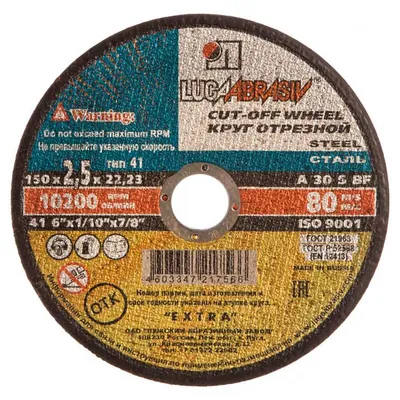 215 ₸Диск отрезной по металлу Луга Абразив 150х2.5х22мм 42-6-150Код: 33099В наличии