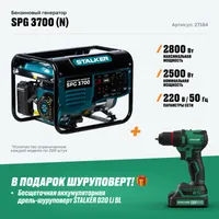 - В наличии121 000 ₸Комплект STALKER Генератор SPG 3700E + Бесщеточный шуруповерт D20 BL 96772Код: 96772