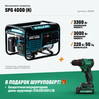 - В наличии119 000 ₸Комплект STALKER Генератор SPG 4000 + Бесщеточный шуруповерт D20 BL 96773Код: 96773