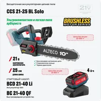 38 820 ₸Выгодный комплект ALTECO Бесщеточная аккумуляторная цепная пила CCS 21-25 BL + Стартовый набор ALTECO Kit 4Ач АКБ + ЗУ 4АКод: 97373 - В наличии