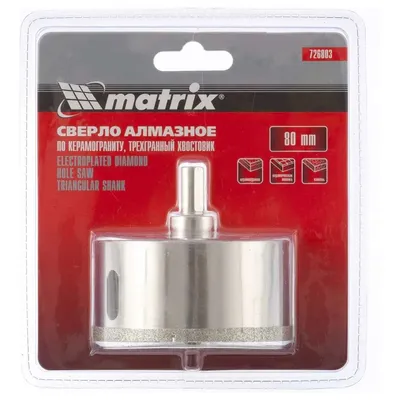 5420 ₸Сверло алмазное по керамограниту MATRIX трехгранный хвостовик 65х67мм 726653Код: 25235В наличии