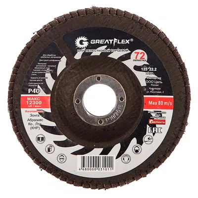 740 ₸Диск лепестковый торцевой Greatflex 125*22.2 Р120 71-125120Код: 33791 - В наличии