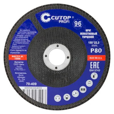 1560 ₸Круг лепестковый торцевой Cutop Profi 150х22.2мм P80 70-409Код: 53254Серия «Profi» - В наличии