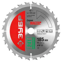 3800 ₸Диск пильный по дереву ЗУБР "МАСТЕР" 185x30/20х24Т 36910-185-30-24_z01Код: 50162