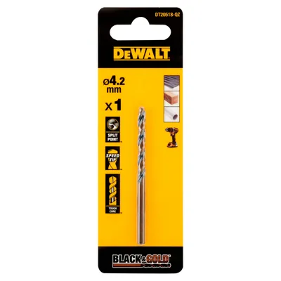 1030 ₸Сверло по металлу DeWALT "BLACK & GOLD" 4.5х47х80мм DT20519-QZКод: 64657В наличииСерия «BLACK&GOLD»Общая длина - 80 ммРабочая длина - 47 мм