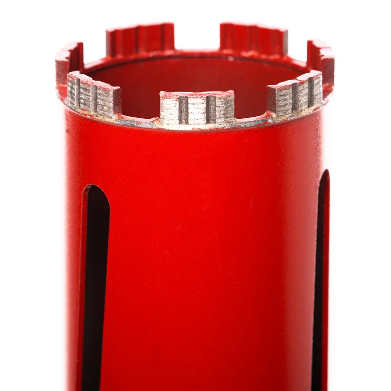 - Идеальны для сухого сверления бетона и кирпича, особенно в условиях, где использование воды невозможно. Боковые отверстия эффективно охлаждают инструмент и удаляют шлак, продлевая срок службы и обеспечивая безопасность.