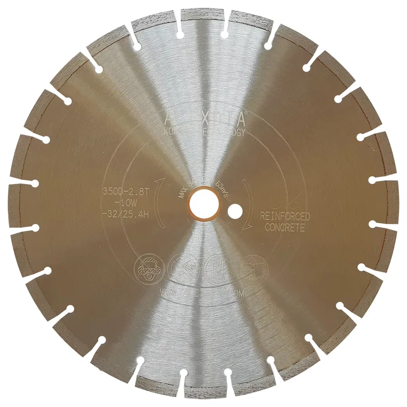 Диск алмазный сегментный по ж/бетону AlexDia 350х25.4мм 139 - сегменты крепятся к телу диска лазерной сваркой, что дает высокую скорость резания и более устойчивую фиксацию сегмента при нагреве диска, особенно при сухой резке. Отличается высокой производительностью при резке бетона с арматурой , металлической фиброй и кладочной сеткой.