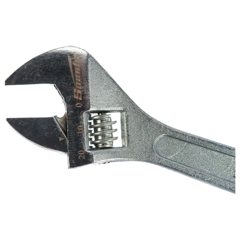 Ключ разводной SPARTA хромированный 200мм 155255 - предназначен для монтажа и демонтажа резьбовых соединений с широким диапазоном размеров крепежа. Ключ изготовлен из инструментальной стали и подвергнут селективной закалке. Встроенный в тело ключа винтовой механизм защищен от коррозии.