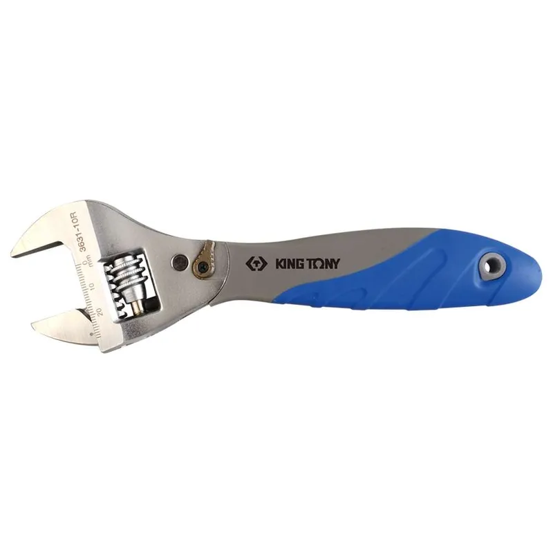 Ключ разводной KING TONY Chrome с трещоточным механизмом 250мм 3631-10R - удобен для работы с шестигранным крепежом различных размеров. Эргономичная рукоятка из мягкого материала удобно располагается в ладони пользователя без риска проскальзывания.