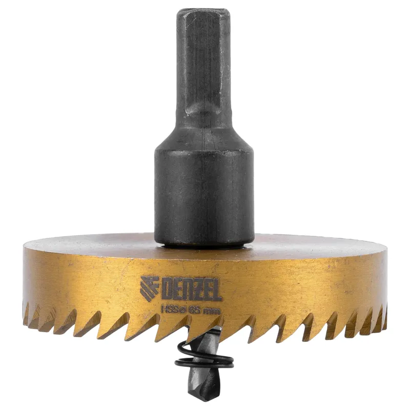 Коронка по металлу DENZEL 65мм 724121 - из стали HSS, с нитридтитановым покрытием, применяется для сверления отверстий в черных, цветных металлах, пластике и других материалах. Рассчитана на профессиональное использование на строительной площадке. Коронка пригодится при прокладке коммуникаций, монтаже оборудования, крепежных элементов и различных конструкций.