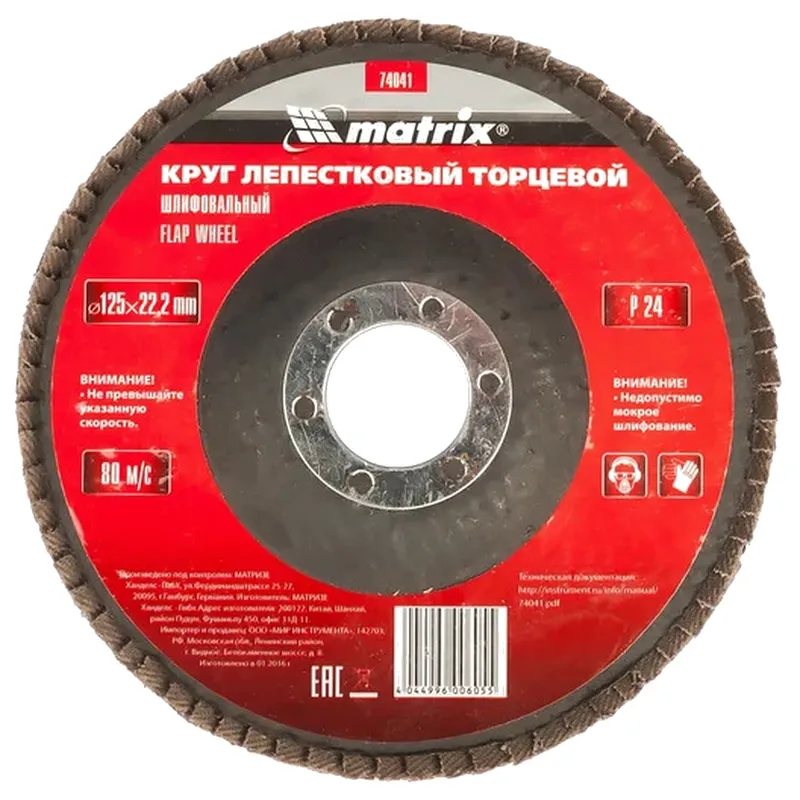 Круг лепестковый MATRIX торцевой 125x22 - является сменным элементом для угловых шлифовальных машин. Применяется для шлифовальных работ по металлу, дереву и другим материалам. Изготовлен из прямоугольных элементов шлифовальной шкурки на тканевой основе, которые расположены в виде веера на подложке из стекловолокна.