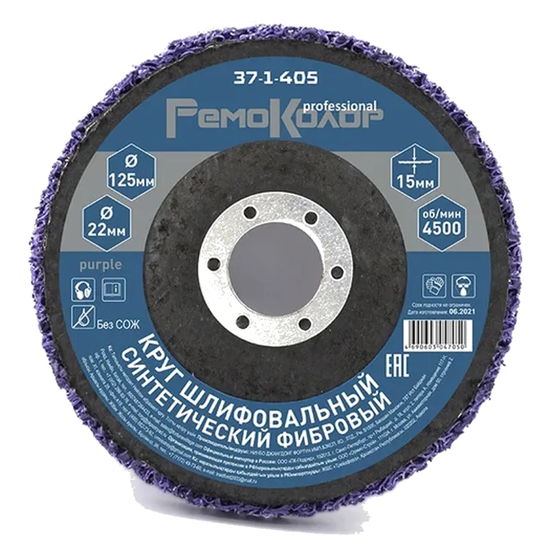 Круг зачистной РемоКолор Purple 125х22.2х15мм 37-1-405 - предназначен для снятия ржавчины и краски с металлических и деревянных поверхностей. Идеально подходит для тонколистового металла, криволинейных поверхностей. Сочетает в себе высокую производительность и качество шлифования. Круг не засаливается в процессе работы, не оставляет на поверхности грубых царапин. Безопасен в работе.