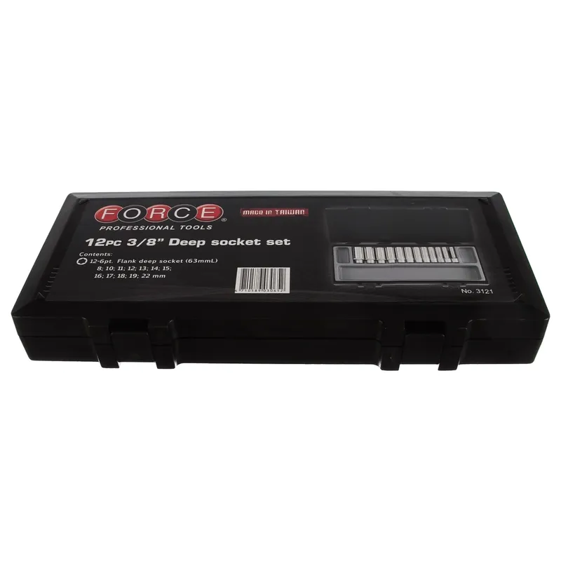 Набор 6 гранных головок FORCE 3/8" 12шт. 3121 - состоит из 12 предметов под посадочный квадрат 3/8" в кейсе.