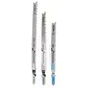 Пилки для лобзика Bosch T123XF/T234X/T345XF 3шт. 2607010515 - качественная оснастка для электроинструмента, позволяющая распиливать заготовки из различных материалов. Для изготовления представленной модели используется сталь, обладающая отличной износостойкостью и долговечностью. Использовать пилки Bosch 2607010515 можно для быстрого и прямого реза пластика, металла и дерева. Оснастка совместима с любыми лобзиками лобзиками с электроприводом, имеющими крепление для хвостовика EU (T-образный). В комплект поставки входит сразу три пилки.