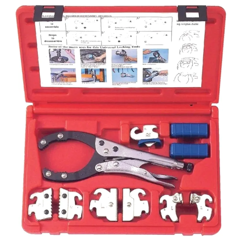 Универсальная струбцина со сменными губками 10 предметов FORCE 910U3 находит применение при работе с различными по форме деталями. В зависимости от типа детали можно установить необходимые губки.
