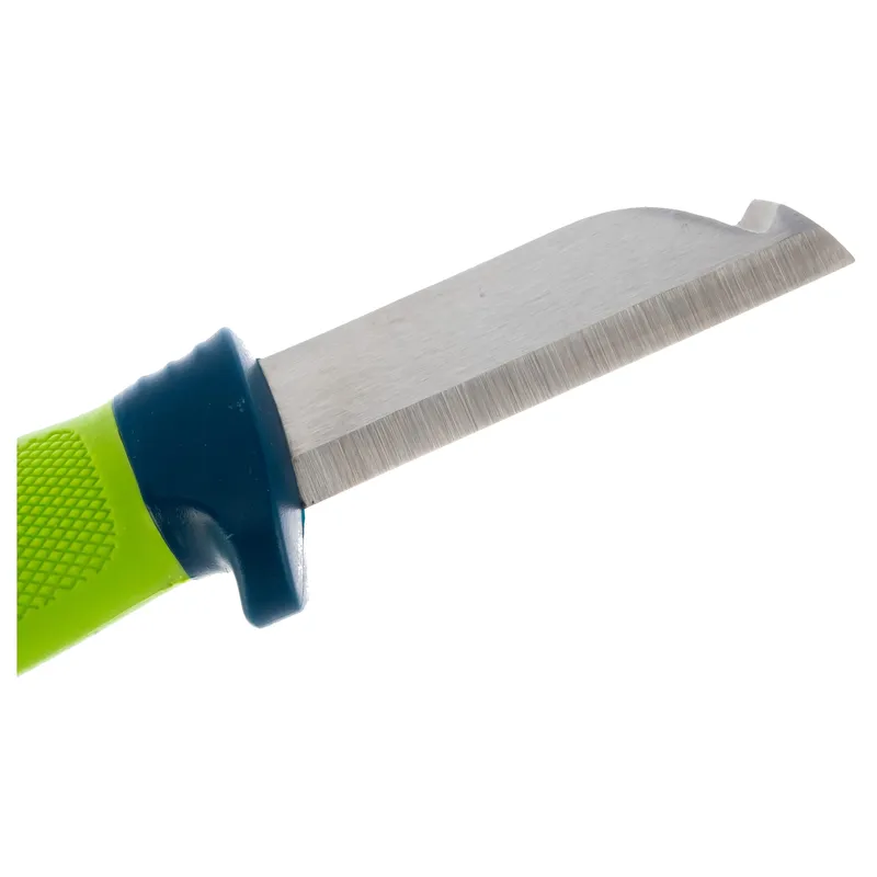 Нож монтажника СИБРТЕХ с чехлом 190мм 79012 - общей длиной 190мм и длиной лезвия 67мм, с чехлом и обрезиненной рукояткой, предназначен для работ с проводкой. С его помощью можно зачистить и обрезать кабель. Нож с пластиковым чехлом безопасен при транспортировке, поэтому его удобно брать с собой на выездные работы.