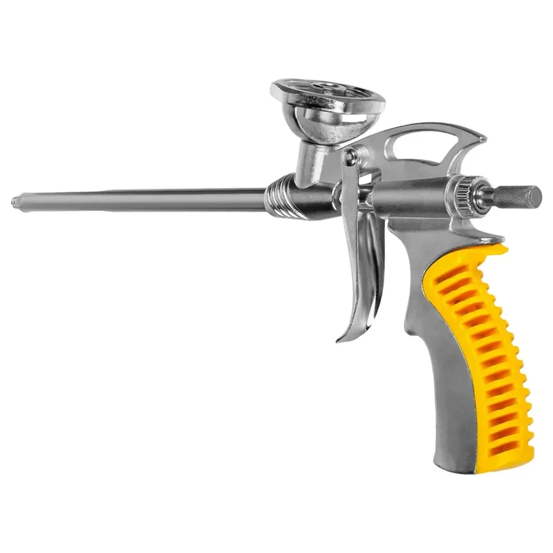 Пистолет для монтажной пены РемоКолор 23-7-2002 - поставляется в комплекте с двумя насадками и двумя пластиковыми удлинителями. Долгий срок службы. Корпус и адаптер изготовлены из алюминия. Металлический курок с никелированным покрытием. Медное сопло с никелированным покрытием.
