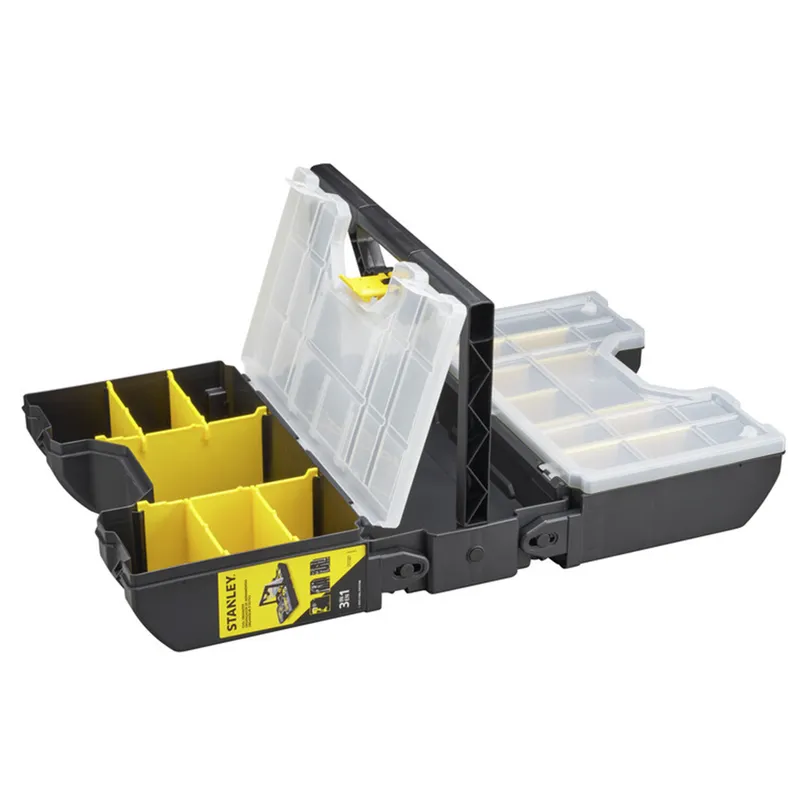 Профессиональный органайзер Stanley 3 в 1 STST1-71963 - это вместительный контейнер для использования в профессиональной сфере ремонта и обслуживания. Большое количество переставных перегородок позволяет оптимизировать пространство ящика для хранения необходимого ручного инструмента и мелочей. Конструкция выполнена из пластика и раскрывается полностью, давая доступ ко всем отсекам.