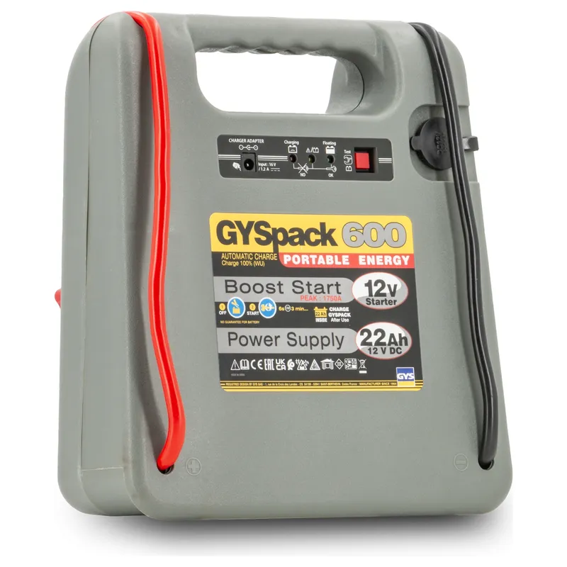 Пусковое устройство GYS "GYSPACK" 600 027336 - служит автономным источником питания 12 В для любых электро-приборов: телевизор, лампа, ноутбук. Звуковой сигнал, предупреждающий об инверсии полярности. Индикатор зарядки аккумулятора. Мгновенно запускает легковые автомобили, бензиновые или дизельные. Источник питания для всех электрических 12- вольтовых приборов.