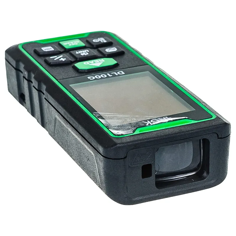 Лазерный дальномер RGK DL100G 778190 - зеленый луч гораздо удобнее в работе, чем аналоги с красным излучателем. Точка зеленого цвета лучше воспринимается человеческим глазом, что позволяет проводить измерения без применения отражательной пластины на бо́льших расстояниях, например, при замерах на улице, или в просторных помещениях - ангарах, складах и т.д.