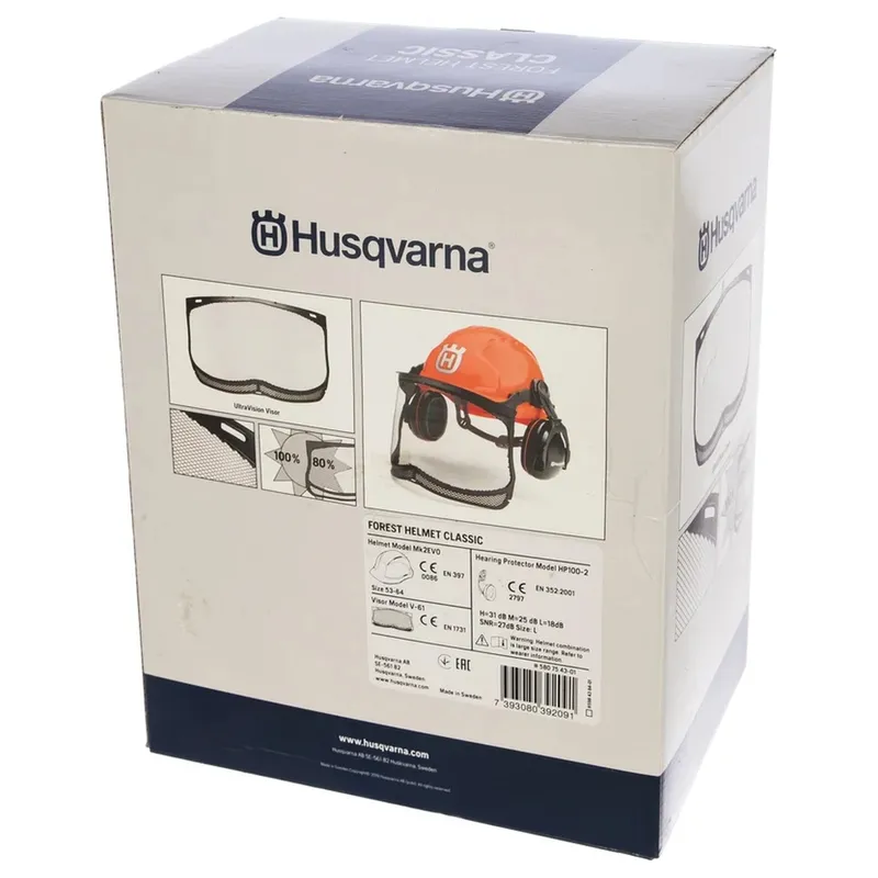Шлем защитный Husqvarna "CLASSIC" в комплекте с сеткой и наушниками 5807543-01 - предназначен для работы в саду, лесу. Он защищает от механических повреждений, а также подходит для работы при низких температурах до - 30 градусов. Оснащена эргономичными наушниками, обладающими хорошей шумоизоляцией, солнцезащитным козырьком, а также москитной сеткой для защиты от мелких летящих частиц. Регулируемый шлемный ремешок позволяет надежно фиксировать маску по голове, обеспечивая комфорт при выполнении работы.
