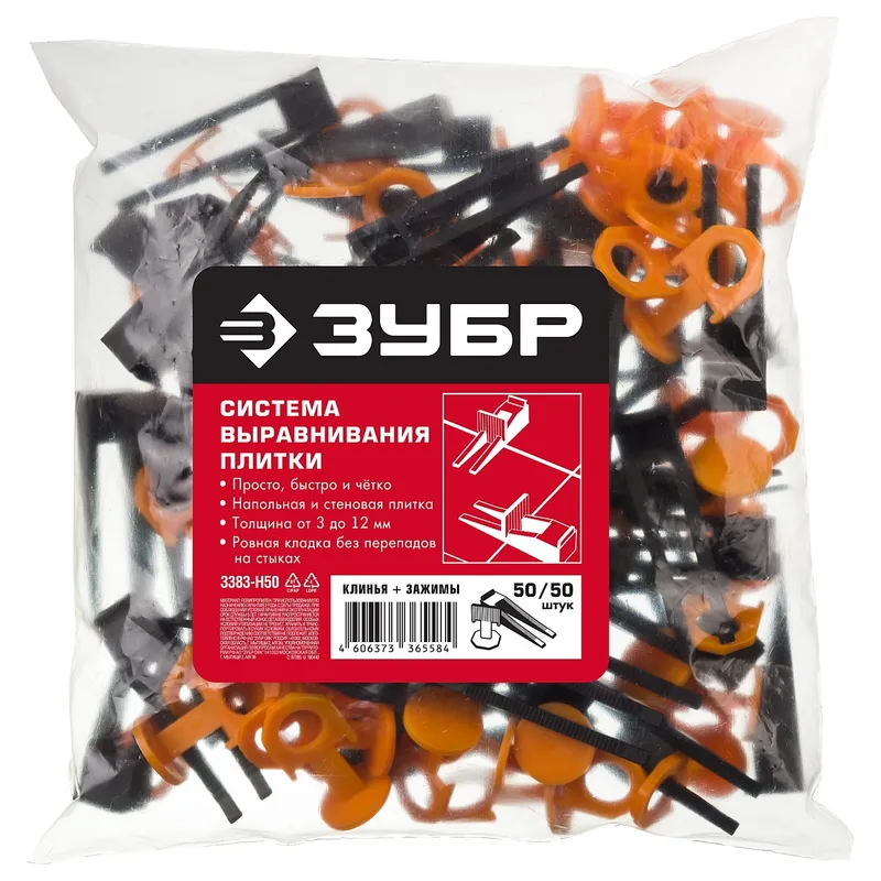 Система выравнивания плитки ЗУБР "МАСТЕР" 1.7мм 50шт. 3383-H50 - рассчитана на работу с плиткой толщиной от 3 до 12 мм и подходит для укладки плитки как на пол, так и на стены. Использование СВП существенно упрощает процесс укладки плитки и керамогранита и с этим справится даже человек, впервые столкнувшийся с ремонтом. Купив СВП вы избежите кривых швов, скопления грязи в швах, получения травм на неровно уложенной плитке и прочих неприятностей. А в итоге вы получите идеально ровную поверхность.