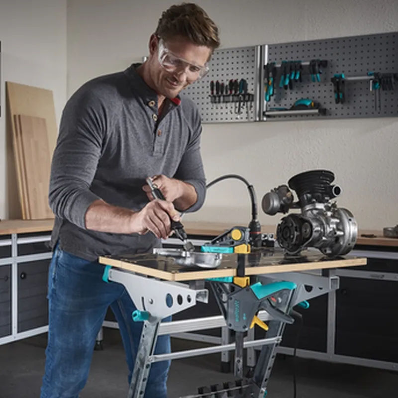 Струбцина быстрозажимная WOLFCRAFT "PRO L" 300мм 3031000 - идеально подходит для деревообработки и изготовления мебели, например, для фиксации и крепления заготовок. Инновационный механизм насоса позволяет осуществлять зажимание и открывание постепенно и контролируемо одной рукой. При этом возможно усилие зажимания до 120 кг. Эргономичная двухкомпонентная рукоятка с мягкой нескользящей зоной обеспечивает безопасную и удобную работу. Благодаря большим прорезиненным зажимным поверхностям с большой глубиной зажима в 100 мм распределение усилия зажимания происходит очень бережно по отношению к заготовке. Они имеют паз с V-образным профилем, что обеспечивает надежную фиксацию при зажимании круглого материала. Передвигаемые распорки защищают заготовку и служат опорными поверхностями для размещения зажатых заготовок. Для быстрого ослабления зажимного усилия просто нажмите рычаг. Благодаря практичной функции «2-в-1» одноручную струбцину можно без использования инструмента переоборудовать для работы в качестве распорок. Продукт отличается прочностью и долговечностью благодаря направляющей из специальной закаленной стали и стеклопластика (GFK). Дополнительно специальная перфорированная структура обеспечивает максимальную несущую способность и стабильность формы. Одноручная струбцина предлагается с различными шириной зажима и расширительными диапазонами.