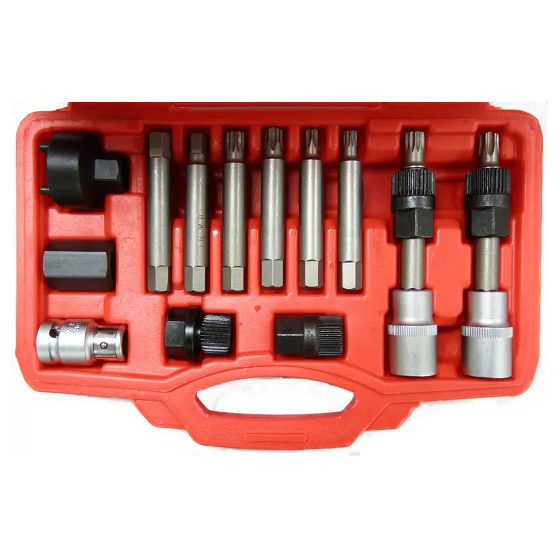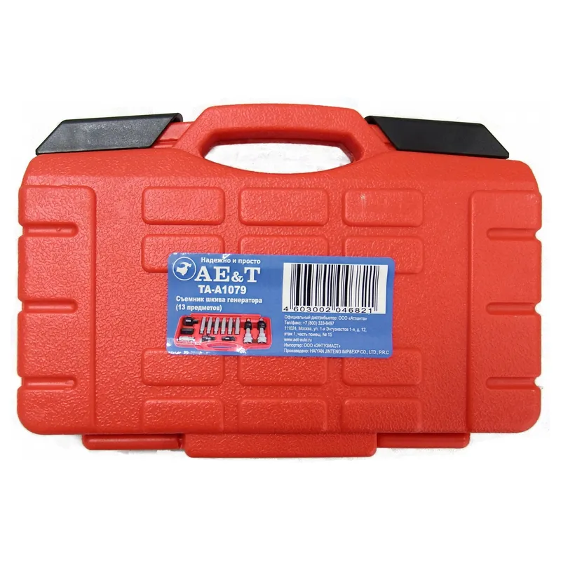 Съемник шкива генератора AE&T 13шт. TA-A1079 - удобен в использовании за счет небольшого размера. Узкий профиль инструмента позволяет без труда решить проблему перетянутого шкива. Для удобства съемник можно переносить в прочном пластиковом кейсе.