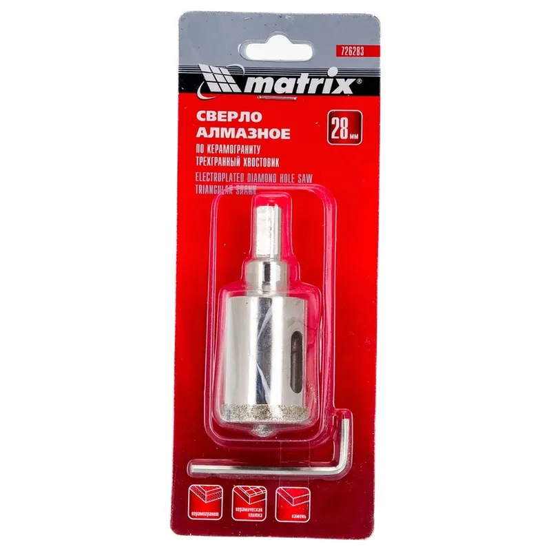 Коронка алмазная по керамограниту MATRIX 28х67мм 726283