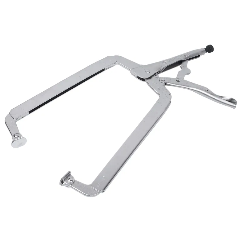 Зажим с фиксатором KING TONY с подвижными губками 457мм 6625-18 - используется для закрепления крупных деталей и уголков. Конструкция губок обеспечивает возможность фиксации заготовки под углом. Для удобства в работе модель оснащается регулировочным винтом.