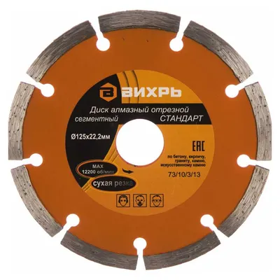1043 ₸1305 ₸Диск алмазный отрезной сегментный Вихрь СТАНДАРТ 125х22.2мм 73/10/3/13Код: 34434 - В наличии