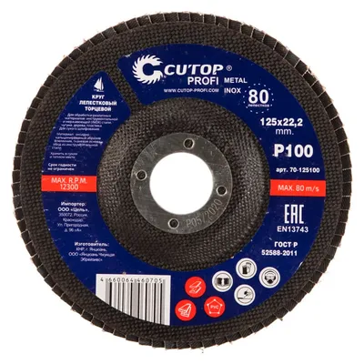 498 ₸Круг лепестковый торцевой Cutop Profi 125х22.2мм P100 70-125100Код: 53245 - В наличии