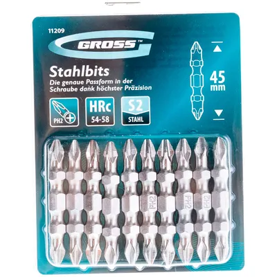 2150 ₸2315 ₸Набор бит двусторонних GROSS PH2х45мм 10шт. 11209Код: 26525 - В наличии