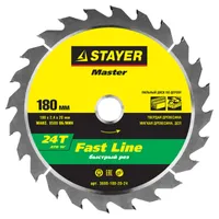 1350 ₸Диск пильный по дереву STAYER "MASTER" Fast Line 180x2.4x20мм 24Т 3680-180-20-24Код: 35999